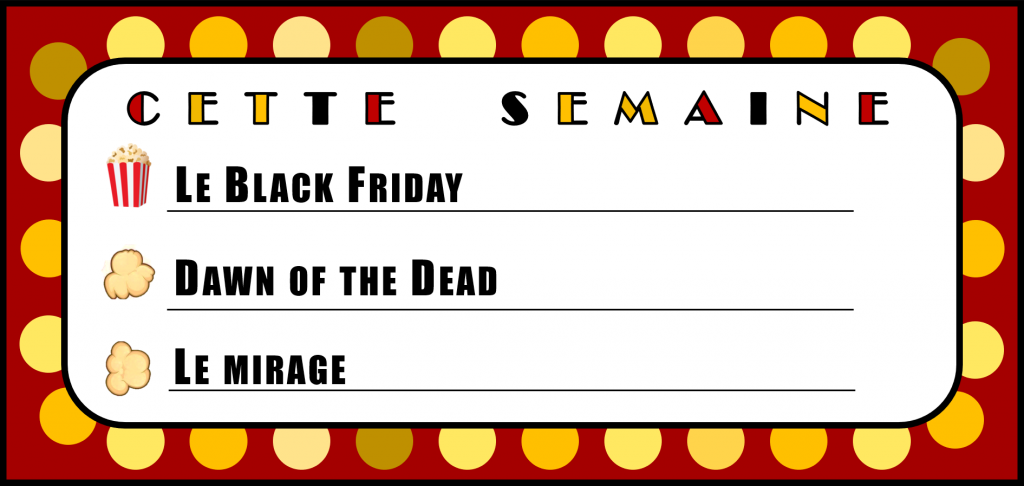 Lire l'articleÉpisode 25 – Black Friday Ce podcast est diffusé sur les ondes de CFAK 88.3 FM. Pour consulter la version originale, cliquez ici. Cette semaine, on vous décortique les origines du Black Friday! Film international : Dawn of the Dead (George A. Romero) Film québécois : Le mirage (Ricardo…