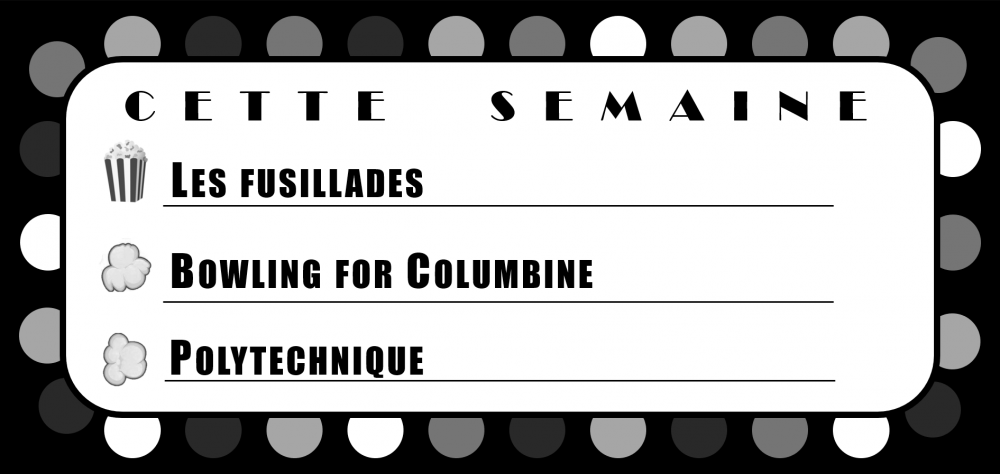 Lire l'articleÉpisode 26 – Les fusillades Ce podcast est diffusé sur les ondes de CFAK 88.3 FM. Pour consulter la version originale, cliquez ici. Cette semaine, on commémore les 30 ans de la tuerie de Polytechnique. Film international : Bowling for Columbine (Michael Moore) Film québécois : Polytechnique (Denis Villeneuve)…