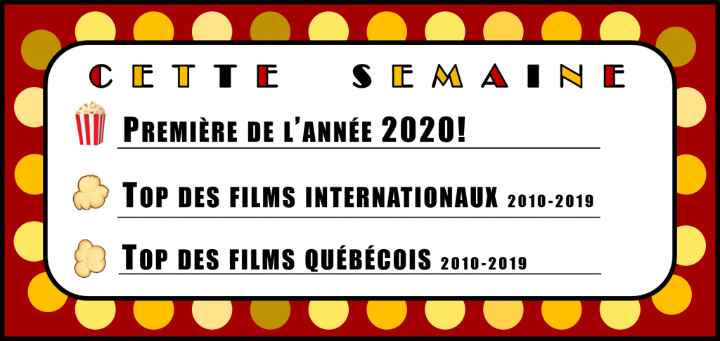 Lire l'articleÉpisode 30 – La décennie 2010 Ce podcast est diffusé sur les ondes de CFAK 88.3 FM. Pour consulter la version originale, cliquez ici. C’est la première émission de 2020! Pour saluer notre arrivée dans le « futur », on fait un retour à la décennie 2010 et ce qu’elle représente pour le cinéma. On…